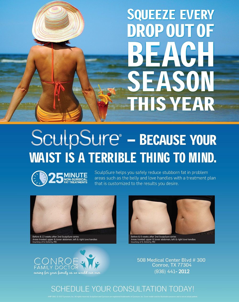 SculpSure Good-Bye-Fat Get Ready For Summer Special-Conroe Family Doctor Call to schedule your free Consultation today (936) 657-4455